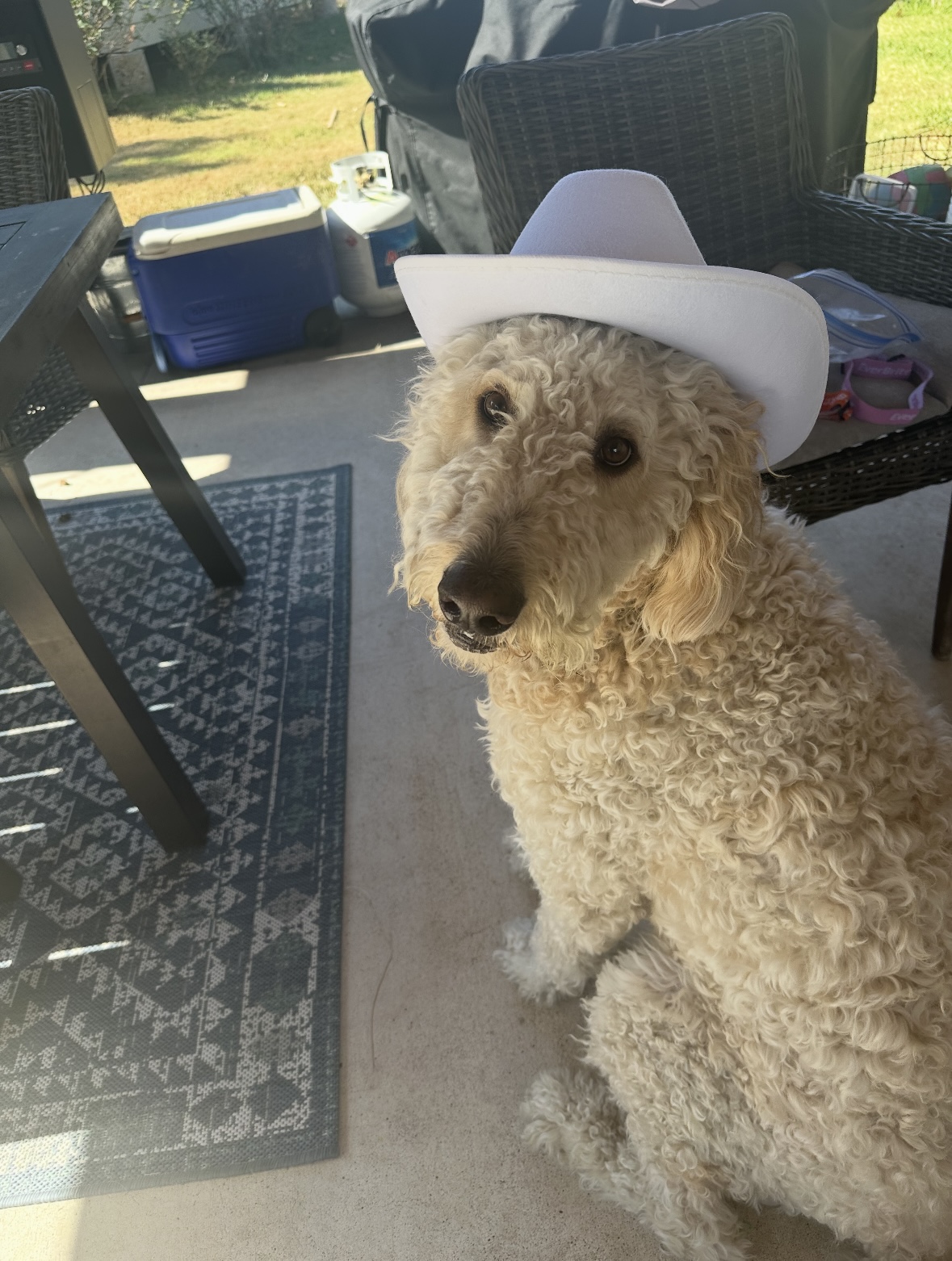 This is us; The Even Stevens (Marc, Adrianna, Rylee, and Theo and our giant golden doodle puppy Teddy Lasso!)